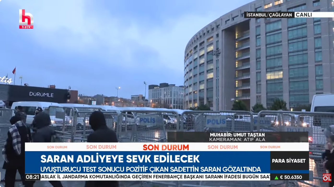 Saran’ın adliyeye getirilmesi nedeniyle birçok Fenerbahçe taraftarının destek için gelmesi bekleniyor.