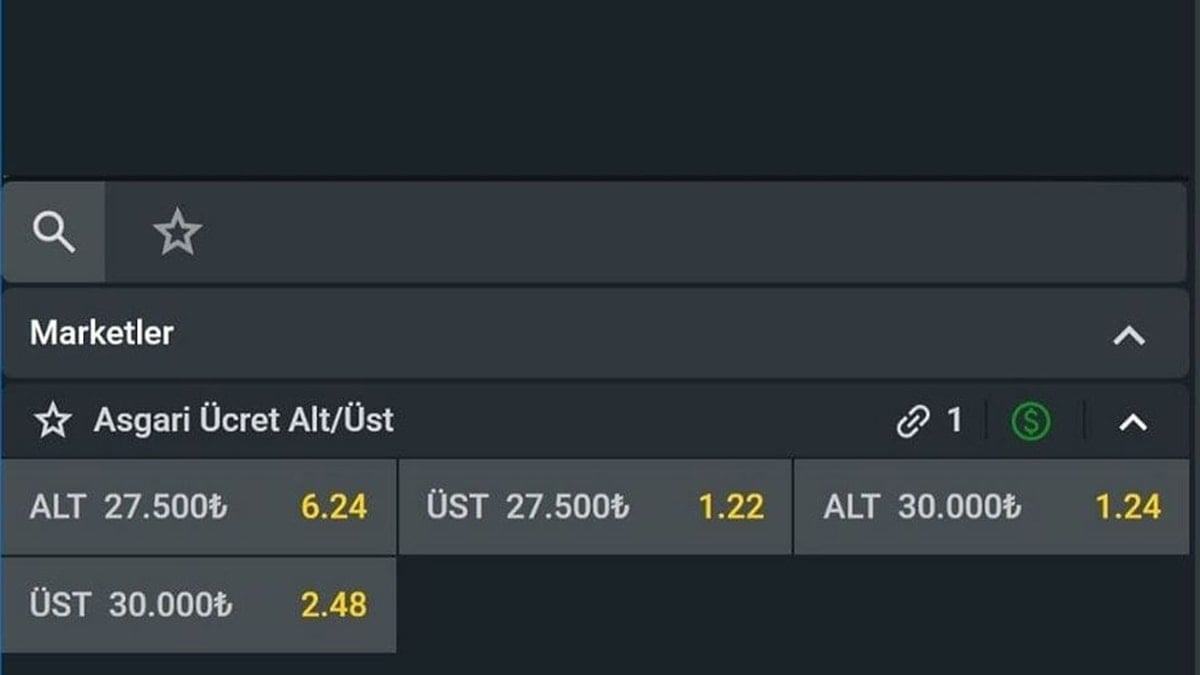 Asgari ücretin 30 binin altında açıklanma ihtimaline 1.24, 30 binin üstünde açıklanma ihtimaline ise 2.44 oran veriliyor. Ancak yasa dışı bu bahis sitelerinde oynamak suç. Üstelik bahis tutturulsa bile paranın ödeneceğine dair hiçbir garanti yok.