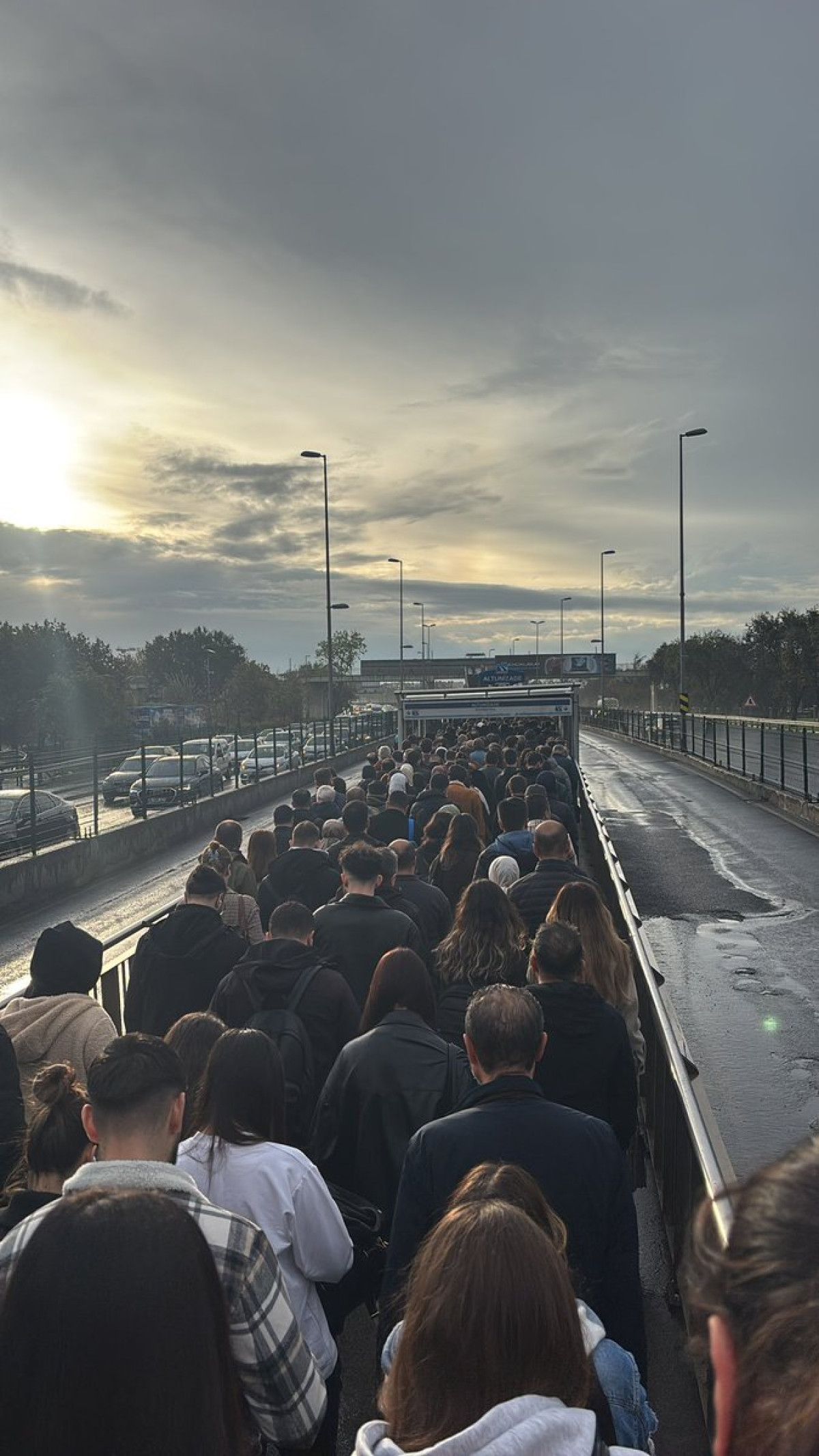 Sabah saatlerinde metrobüse binmek isteyen vatandaşlar, dakikalarca kuyrukta beklemek zorunda kaldı.