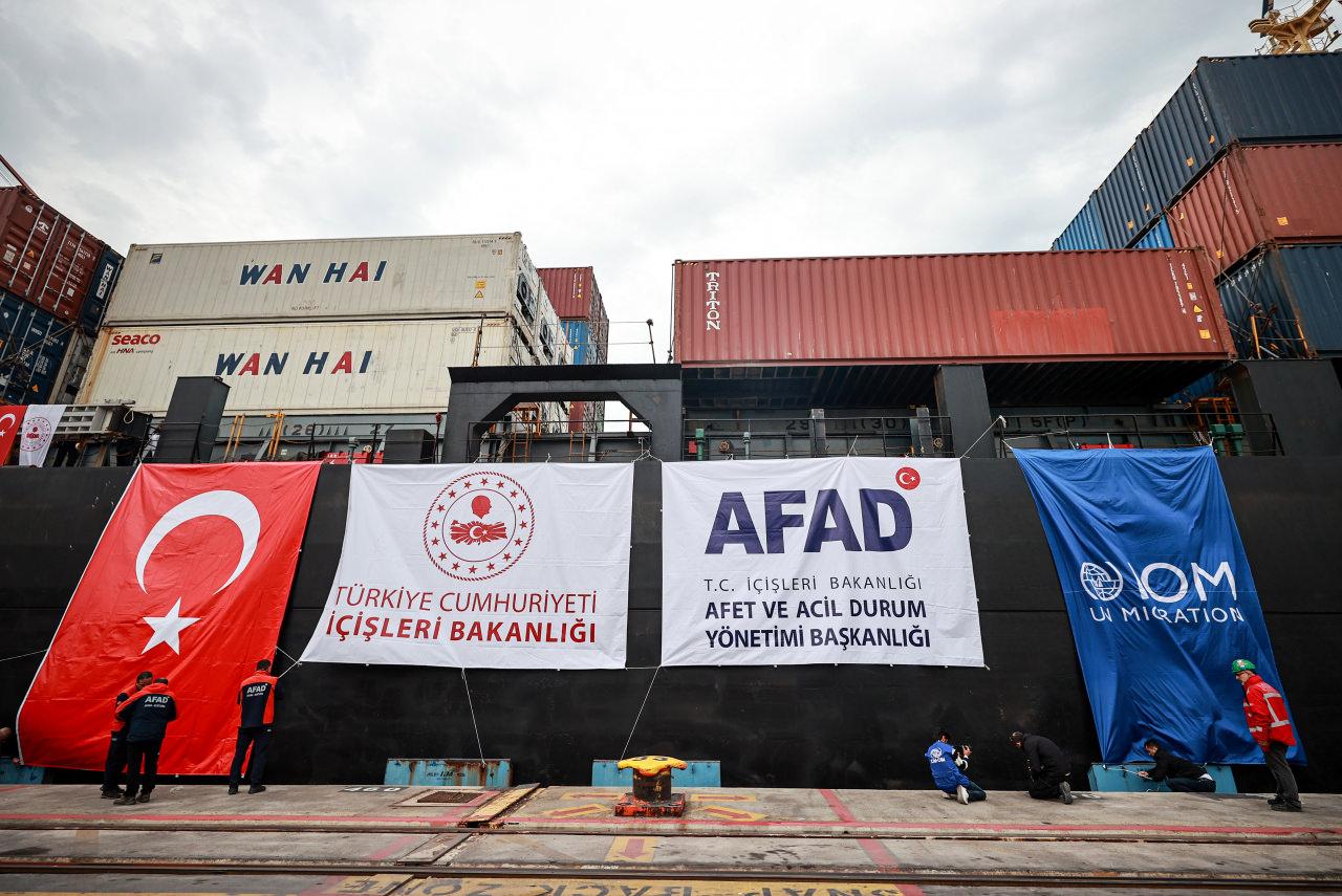 Bu kapsamda AFAD öncülüğünde temin edilen 10 bin 80 çadır, rıhtımdaki “Nz Ningbo” adlı gemiye yüklendi.